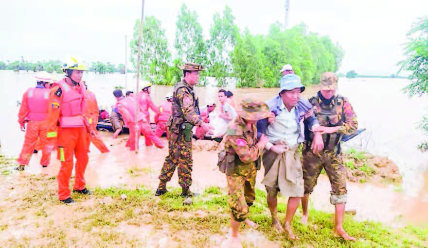 Timely evacuation of affect­ed residents and are being car­ried out with vigour by various teams, including members of the Tatmadaw, Myanmar Police Force, Fire Brigade, Red Cross Society, and social welfare rescue groups.