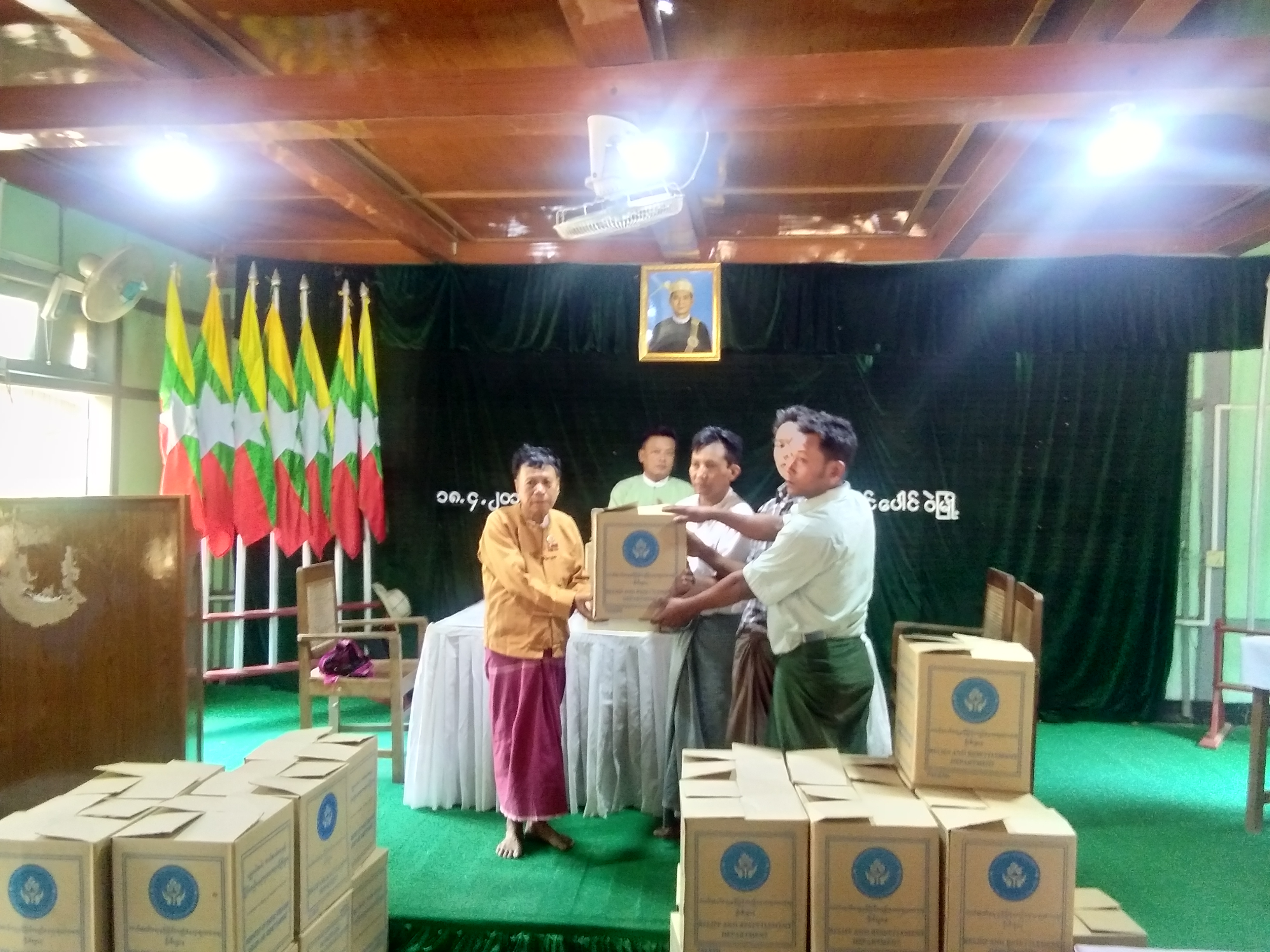 Sinbaungwe Township Disaster Management Department provided relief items to storm victims in Kyauksaungsan village, Sinbaungwe Township, Thayet District, Magway Region through MP of regional Hluttaw, officials from the Township Disaster Management Department and departmental personnel.