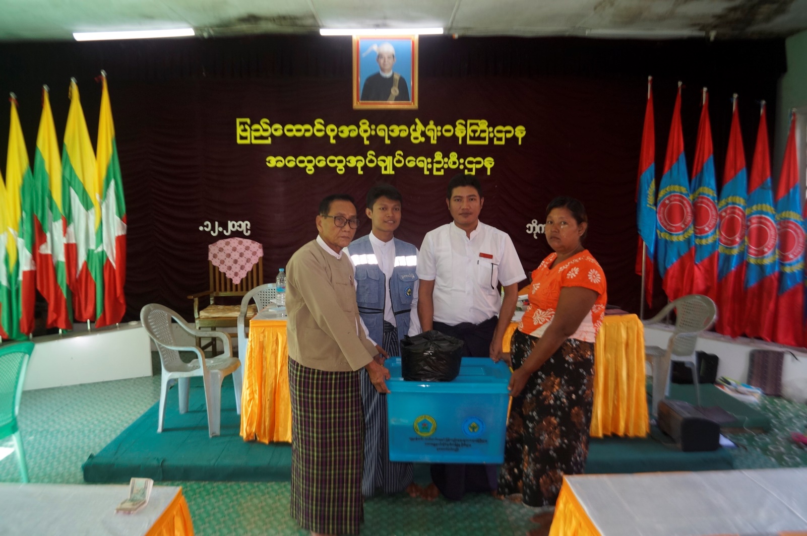 A ceremony to provide relief items to fire victim, organized by the township Department of Disaster Management, was held at the meeting hall of the Township General Administration Department in Bogalay, Ayeyawady Region this morning.