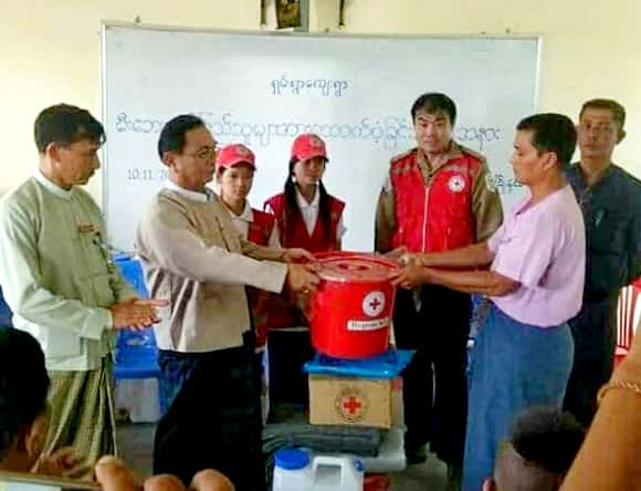The township Administrator U Win Myint, chairman of the region Red Cross Society U Man Ky Shwing and officials made a domiciliary visit to provide relief items to fire victims from seven households in the township and handed over relief items including blankets, mosquito nets, building materials and drinking water and encouraged them.