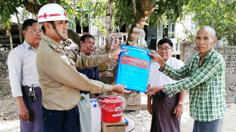 Officials from the region Red Cross Society made a domiciliary visit to provide relief items to fire victims in Ward-1 in Kangyidaunt and handed over a family kit box, K 120000 and other relief items to fire victims.