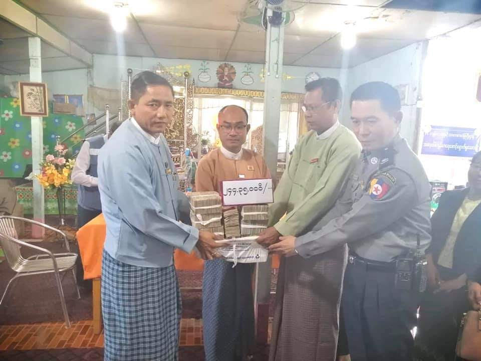 Officials from Department of Disaster Management together with the Hluttaw Representative and  members of the township Disaster Management committee provided rice worth K 24.4 million for three months to 905 fire victims from 235 households and K 500000 each to two people who died in the fire in the township.