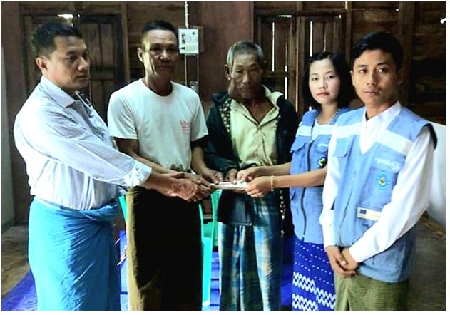 Officials from the township Department of Disaster Management under Ministry of Social Welfare, Relief and Resettlement handed over a total of K 227300 including K 200000 for building materials and K 27300 for rice for one week to 10 victims of powerful winds in three Villages in the Township.