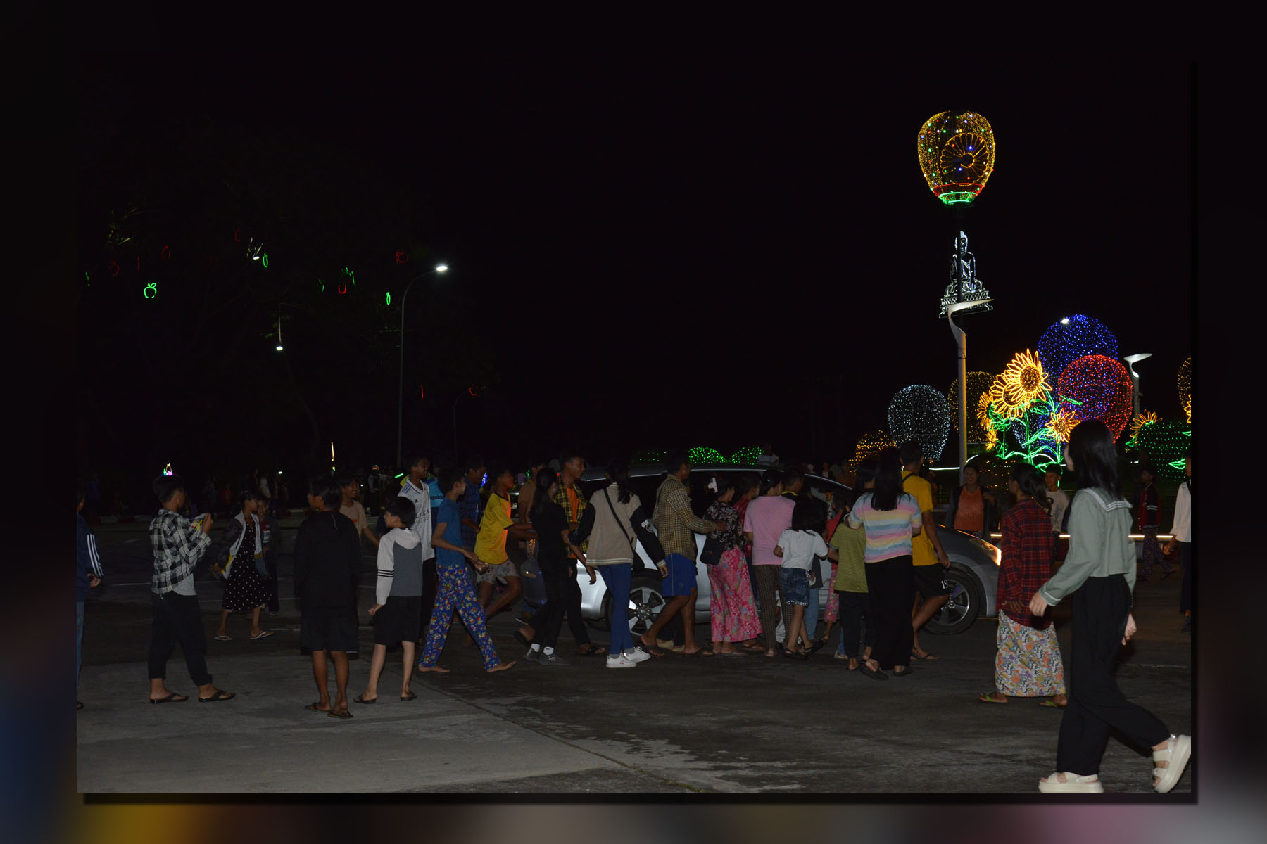 Roads, buildings and trees in the compound of the Office of the Commander-in-Chief (Army) were illuminated with multi-coloured lights to mark the Tazaungdine lighting festival. Families of the Office of the Commander-in-Chief (Army, Navy and Air) happily enjoyed the festival.