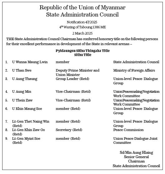 Republic of the Union of Myanmar National Defence and Security Council Notification 2/2026