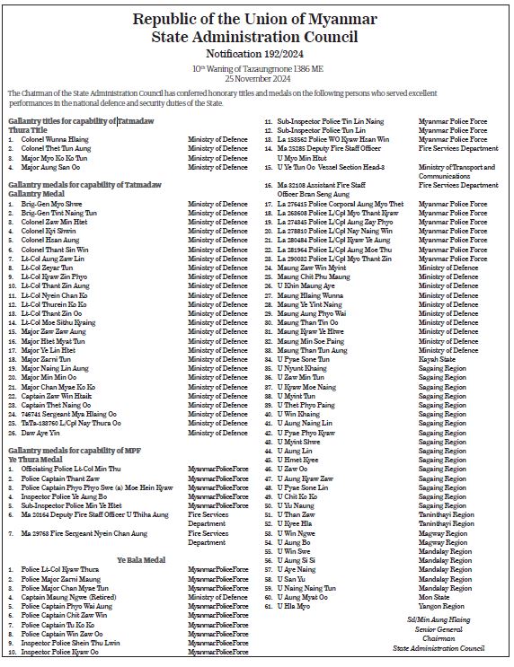 Announcement on List of Individuals Elected as Pyithu Hluttaw Representatives