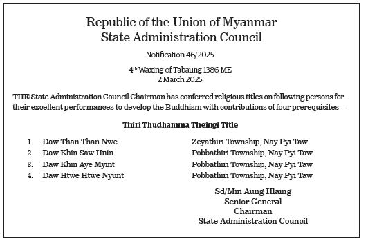 Republic of the Union of Myanmar National Defence and Security Council Notification 2/2026