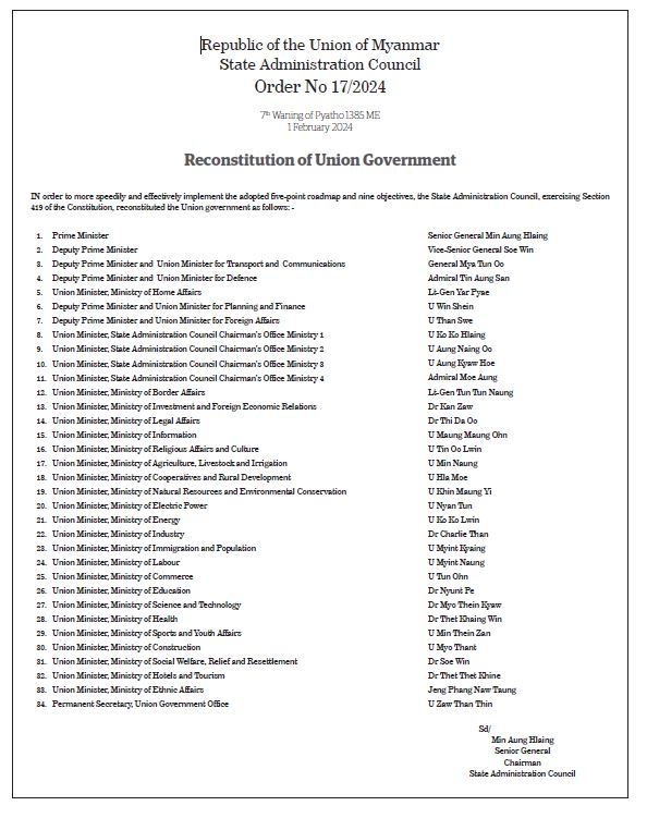 Republic of the Union of Myanmar State Administration Council Order No 17/2024