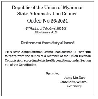 Republic of the Union of Myanmar State Administration Council Order No 26/2024