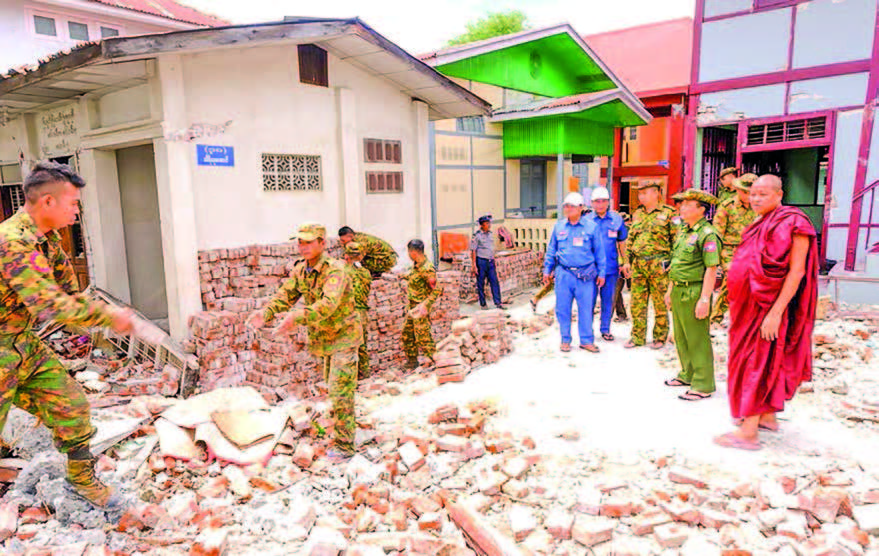 TATMADAW members, Myanmar Police Force members, foreign rescue squads and volunteers are making concerted efforts in rescue and rehabilitation operations in the Mandalay earthquake-affected areas.