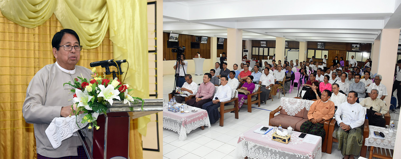 Union Minister for Information Dr Pe Myint gave the opening speech at the talk, led by U Aye Maung Kyaw, a senior researcher of Myanmar Studies Group (MSG), and U Moe Zaw Oo, an advisor of Peace Commission (PC).