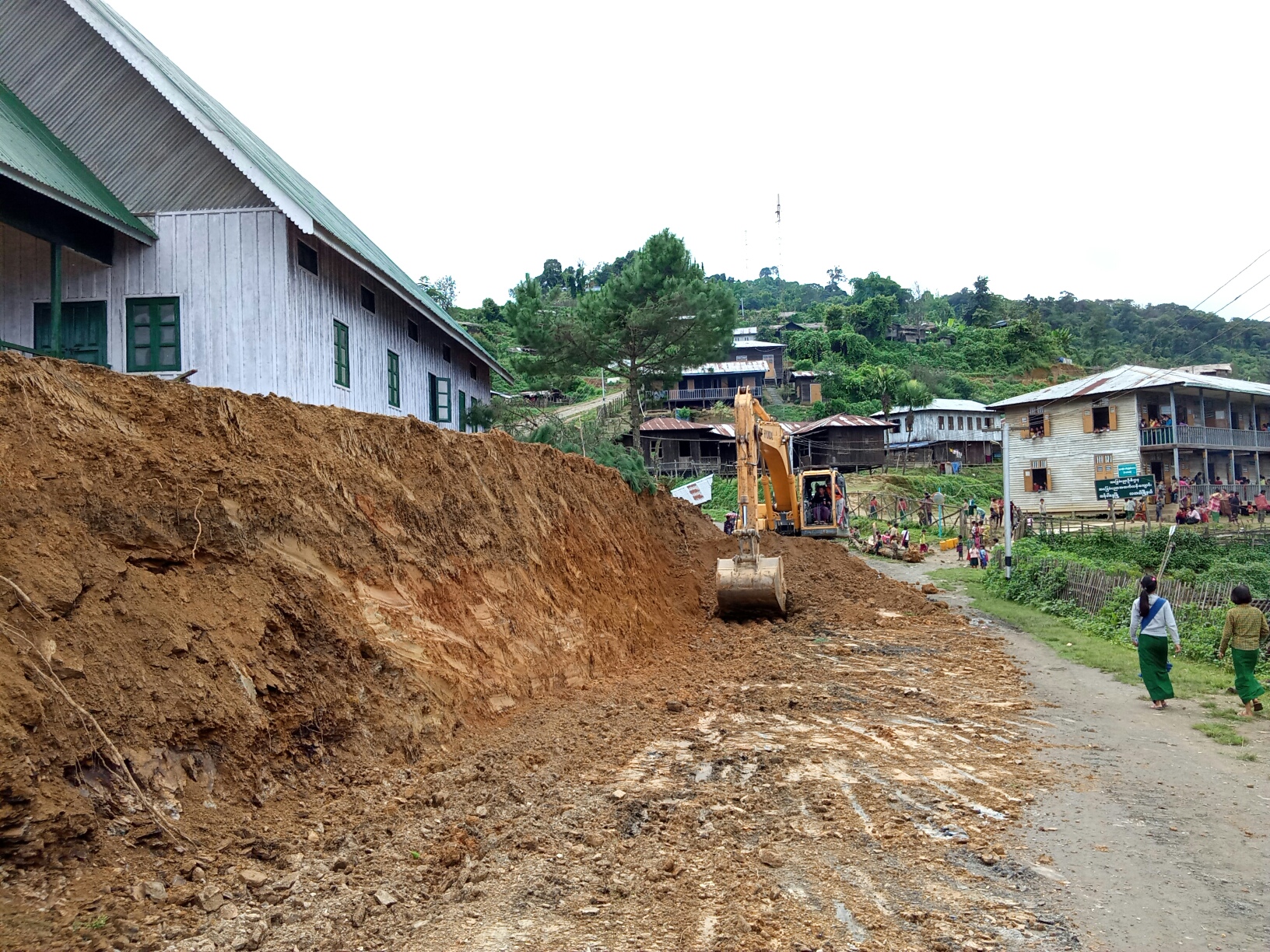 A retaining wall is being built in front of a basic education high school in Htanpagway Town, Naga Self-Administered Zone in Sagaing Region.