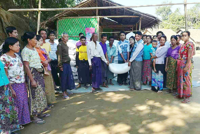 The rice distributed yesterday would last each person two weeks, said officials. —Thet Lwin Soe (IPRD)
