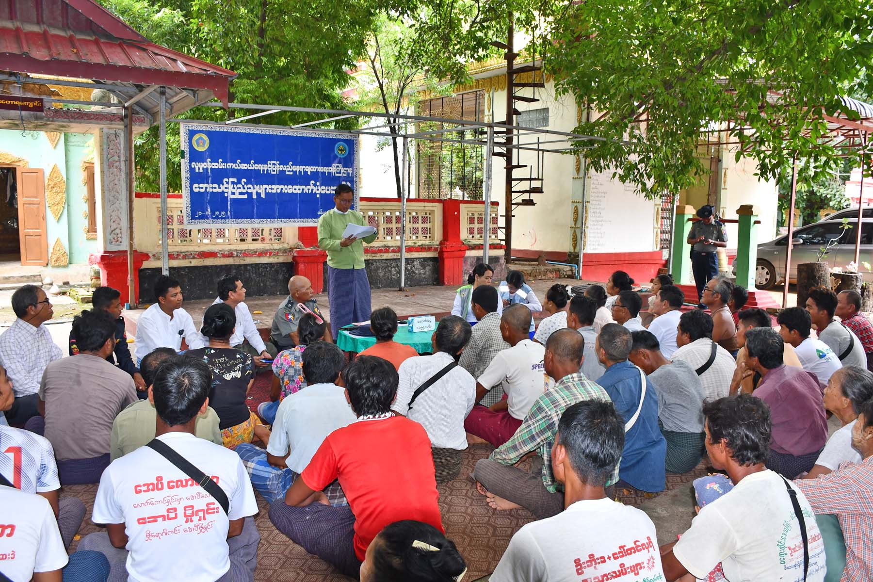 U Myint Myint, Chairman of the Township Disaster Management Team, and Daw Kay Thwe Win, Assistant Director of the Minbu District Disaster Management Department, addressed attendees on the purpose of the support. A total of Ks 1,055,000 in rice rations was provided to 221 people from 64 households displaced by flooding on 20 August.