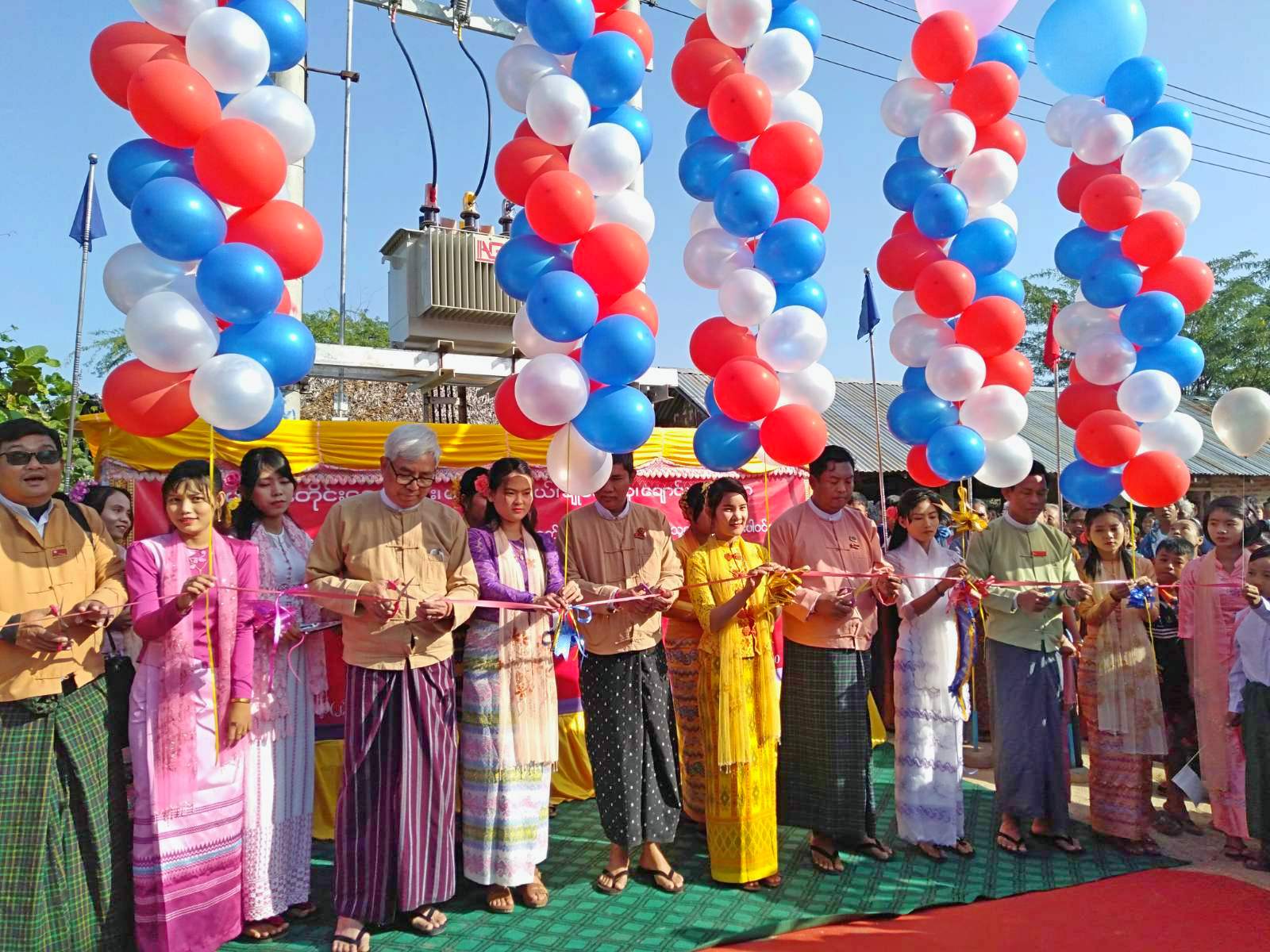 The rural electrification structure was formally opened by Regional Minister for Natural Resource, Environment, Electricity and Energy U Myint Zaw, the Lower House MP U Paik Ko, the Upper House Lawmaker U Mya Min Swe, Regional Legislator for No.1 Constituency U Han Zaw Win and Township Administrator U Saw Htoo Aung by cutting a ceremonial ribbon.