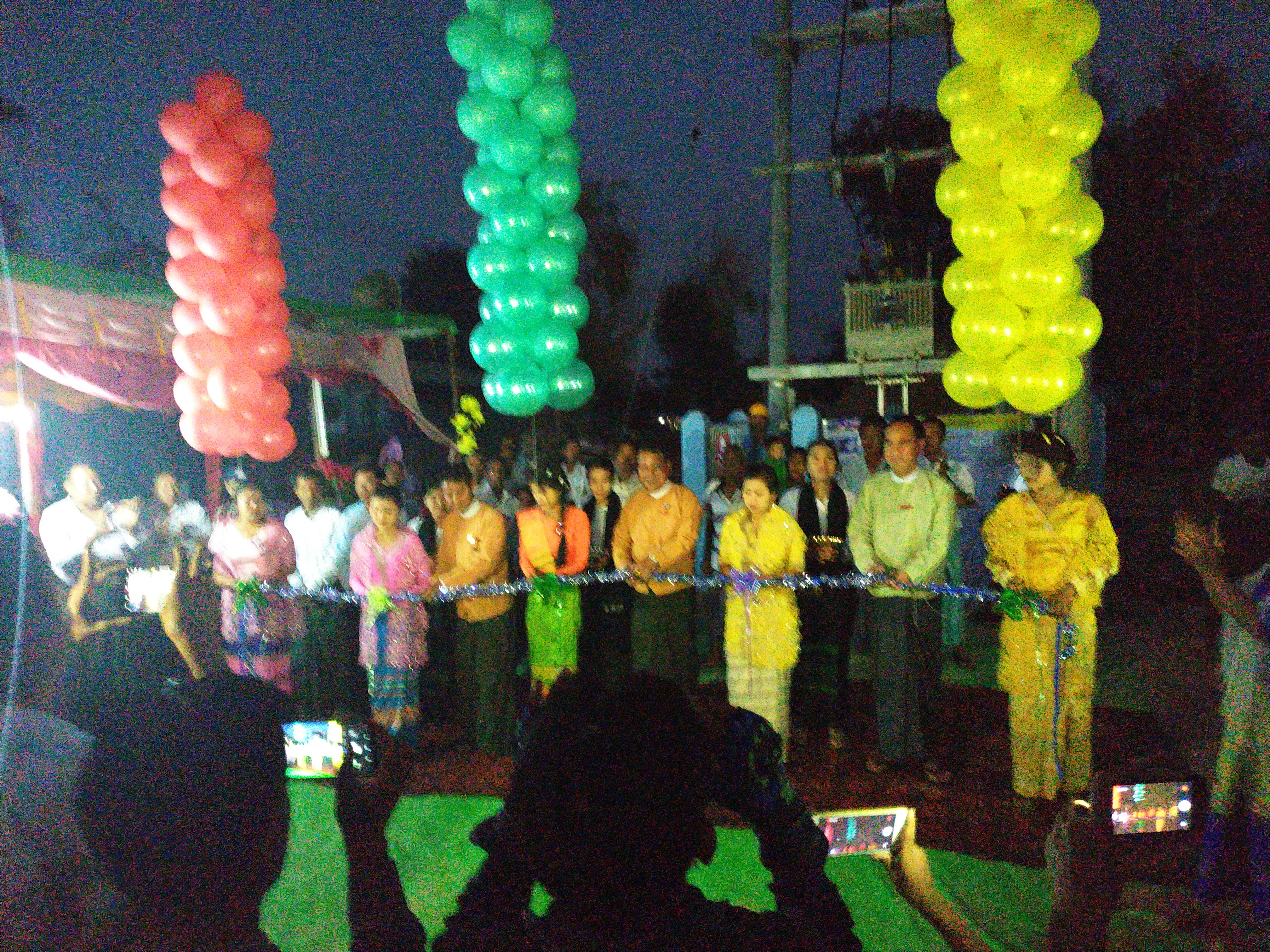 Next, the regional minister, regional MP, the chairman of township management committee and an official from the Electricity Supply Enterprise formally opened the electrification structure by cutting a ceremonial ribbon.—Than Htike (YeU)