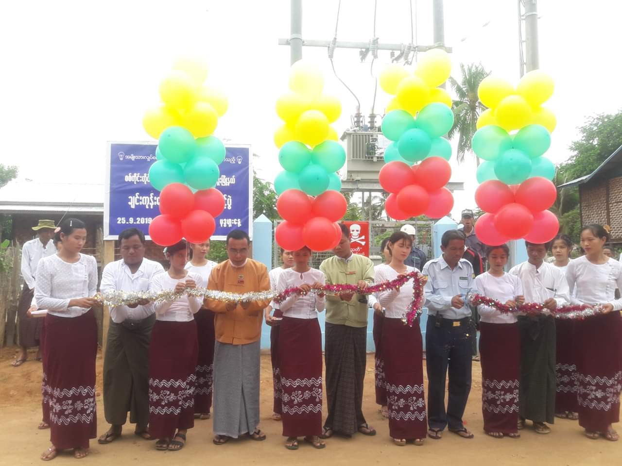 The rural electrification structure was formally opened by the Pyithu Hluttaw Representative U Min Naung, Chairman of the township management committee U Khaing Lin Naing, an official from Electricity Supply Enterprise and a village administrator by cutting a ceremonial ribbon. Next, the Lower House MP and the township management committee chairman gave speeches and the official from ESE disseminated knowledge about the risks of electricity.