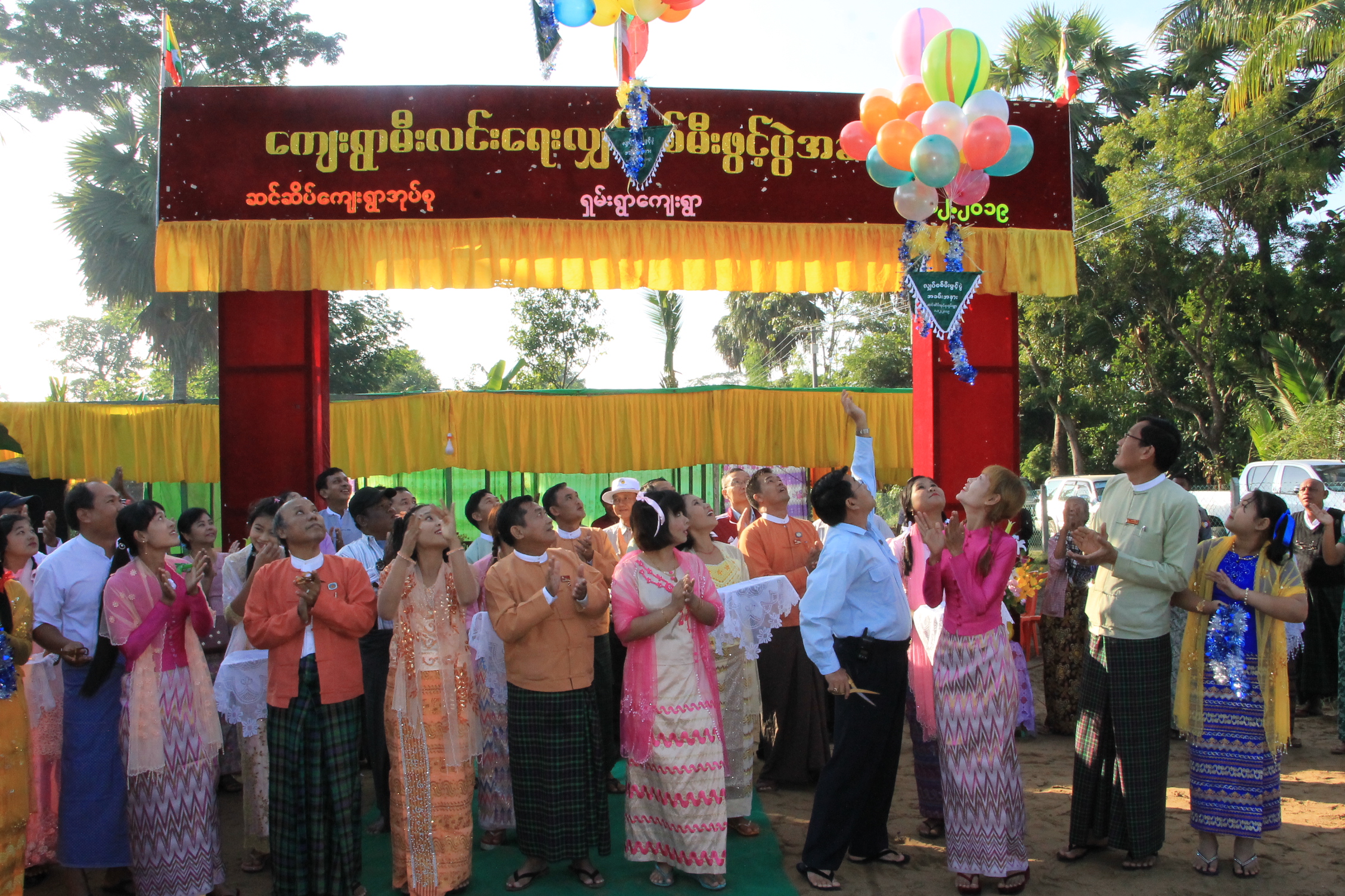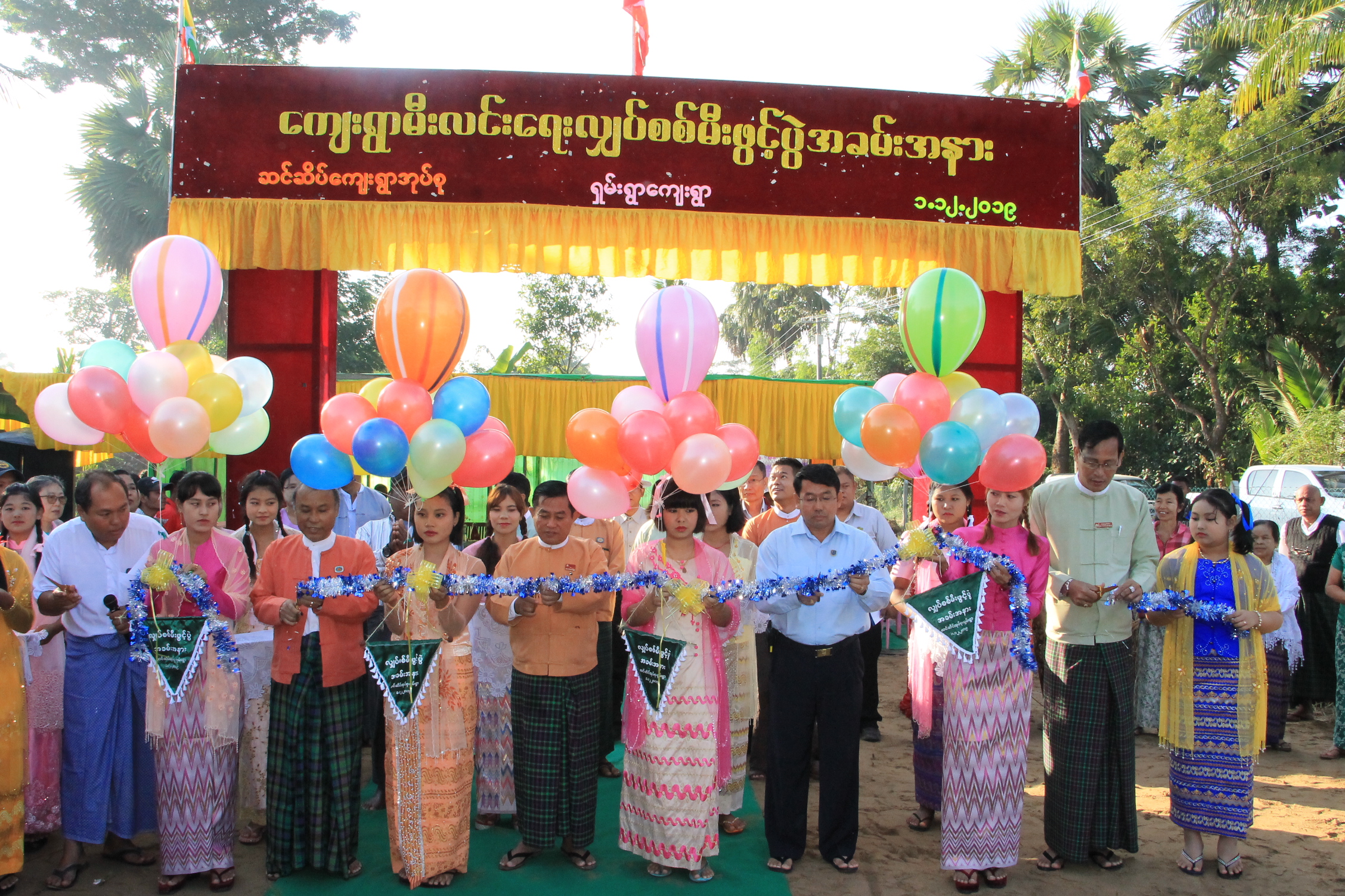 First, the electrification facility was formally opened by the chief minister, an official from the Electricity Supply Enterprise, the Lower House MP U Khin Maung Than, Township Administrator U Tun Tun Win, and chairman of the village electrification committee U Khin Maung Latt by cutting a ceremonial ribbon. Next, the chief minister delivered an address, the ESE official shared knowledge about the risks of electricity and the chairman of village electrification committee expressed words of gratitude.