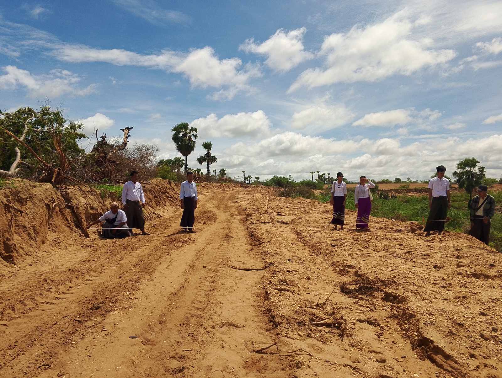 Officials from Yenangyaung Township Department of Rural Development made a field visit to inspect the progress of rural road construction in Thaphan-Chaung village, Baeseik village-tract in Yenangyaung Township, Chauk District, Magway Region on 18 June.