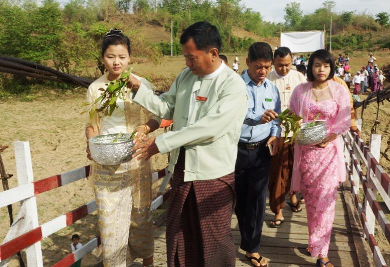 Next, the Pyithu Hluttaw lawmaker Daw Yin Min Hlaing called for durability of the bridge and the Myotha Hluttaw representative elaborated on works about the bridge. Then the lawmakers, regional legislator U Aung San Win and Gangaw District Deputy Commissioner U Kyaw Min Nyo cut a ceremonial ribbon to open the bridge.