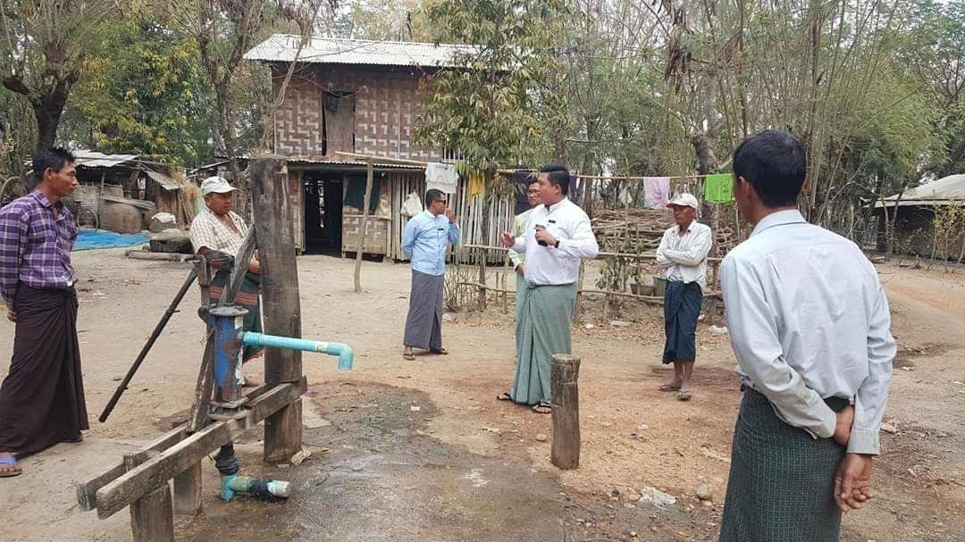 Officials from the Department of Rural Development made an inspection tour to Thandaygon Village, Thegon Township in Bago Region over the implementation of rural water supply task and related works.