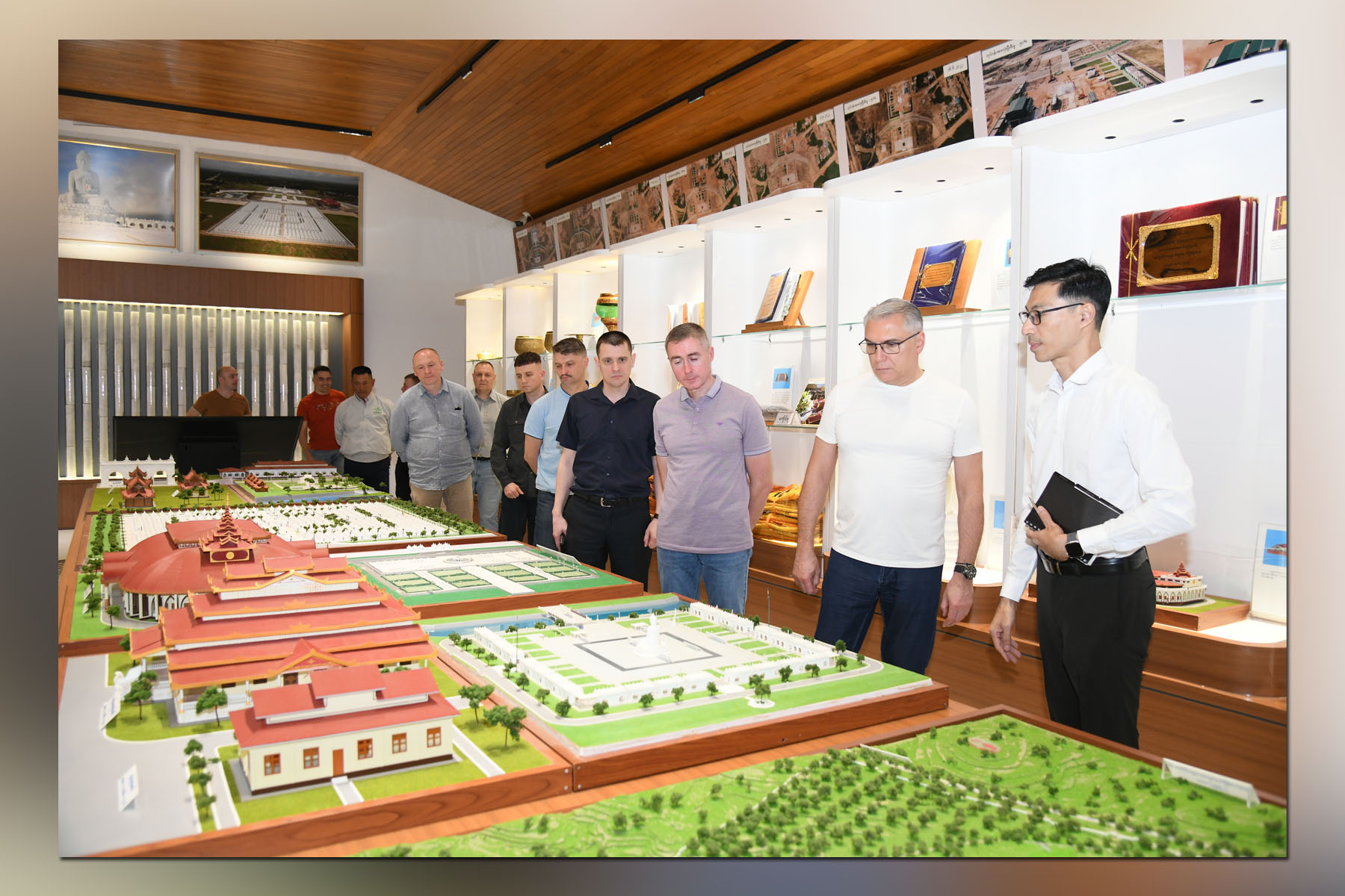 They proceeded to the Defence Services Museum, where the museum’s curator gave an introduction to the history of the museum, the purpose of its opening, the various galleries and the exhibits. They then looked around the Defence Services Museum and Historical Research Institute with interest and asked questions to the gallery staff. Then, they signed the guest book and took group photos.
