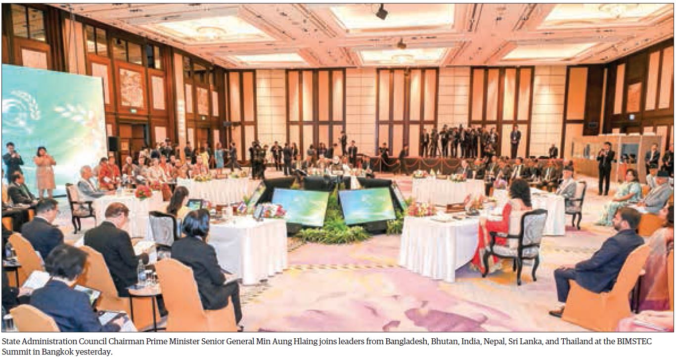 Chairman of the State Administration Council Prime Minister Senior General Min Aung Hlaing participated in the BIMSTEC Summit at Shangri-La Hotel in Bangkok of Thailand yesterday morning.
