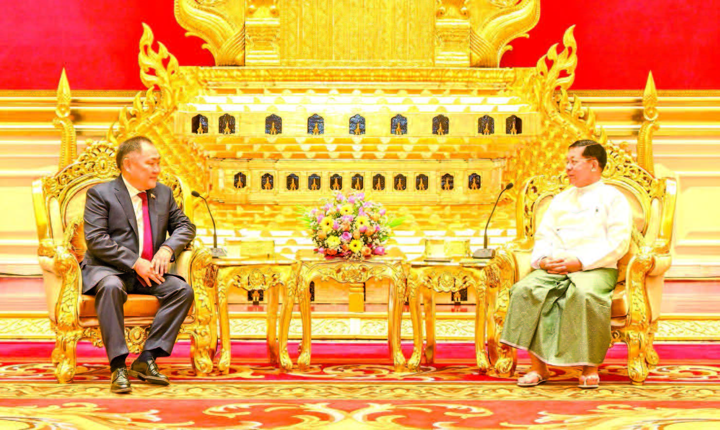STATE Administration Council Chairman Prime Minister Senior General Min Aung Hlaing received a delegation led by Mr Sholban Kara-Ool, Deputy Chairman of the State Duma of the Federal Assembly of the Russian Federation, at the Credentials Hall of the Office of the State Administration Council Chairman in Nay Pyi Taw yesterday morning.