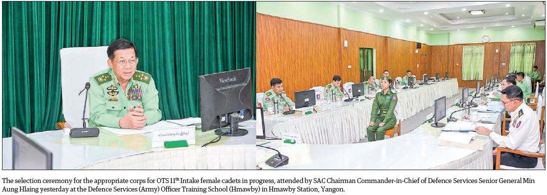 CHAIRMAN of the State Administration Council Commander-in-Chief of Defence Services Senior General Min Aung Hlaing attended the choice of arm for female graduate cadets of the 11th Intake of the Graduate Female Cadet Course of the Defence Services (Army) Officer Training School (Hmawby) in Hmawby Station of Yangon yesterday morning.