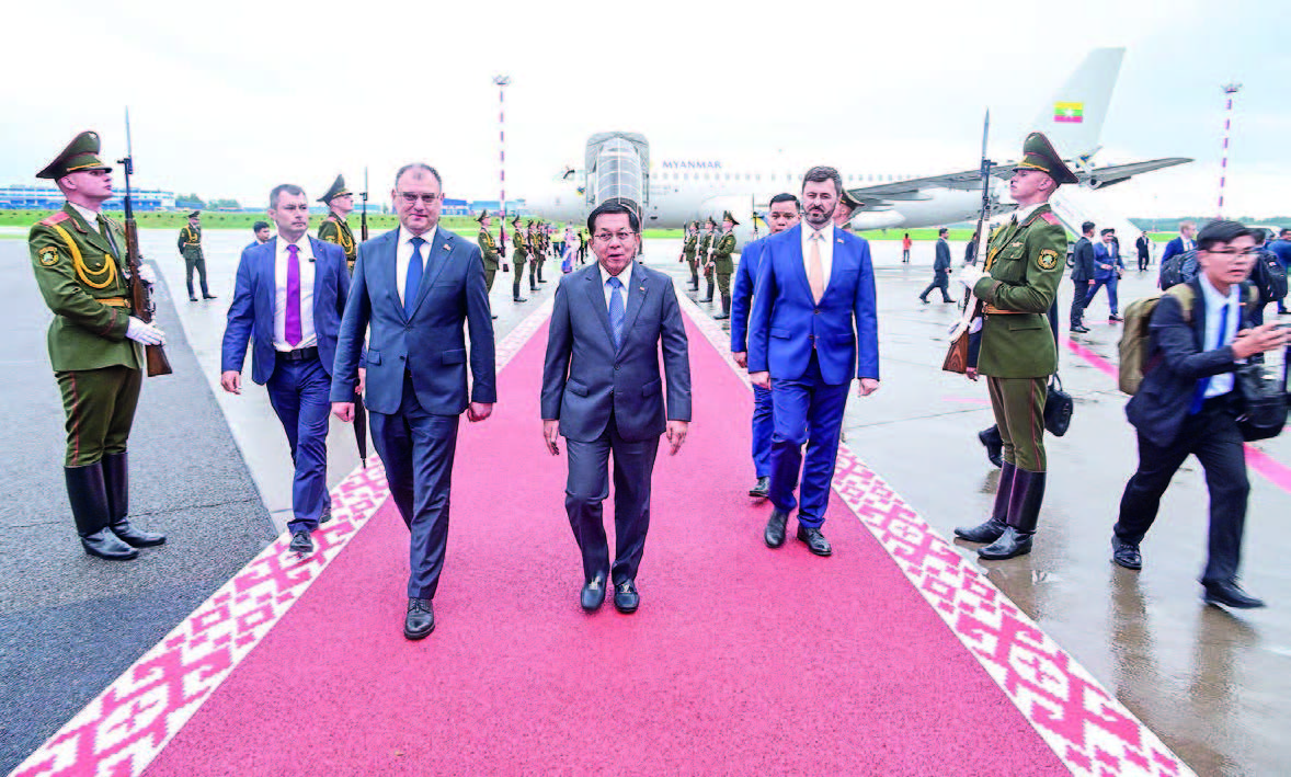 AT the invitation of Rotating Chair of Eurasian Economic Union (EAEU) President of the Republic of Belarus Mr Alexander Grigoryevich Lukashenko, a Myanmar high-level delegation led by Chairman of the State Administration Council Prime Minister Senior General Min Aung Hlaing left Nay Pyi Taw Tatmadaw Airport by special aircraft yesterday morning to attend the 4th Eurasion Economic Forum (EAEF 2025) to be held in Minsk.