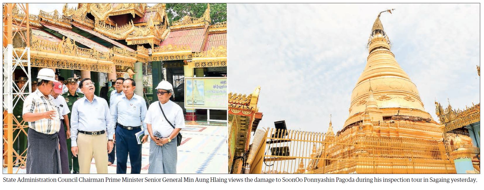 Chairman of the State Administration Council Prime Minister Senior General Min Aung Hlaing yesterday morning inspected the collapse of Inwa Bridge in Sagaing, the loss and damage to Sagaing in the event of the earthquake and the ongoing rehabilitation process, and fulfilled the requirements.