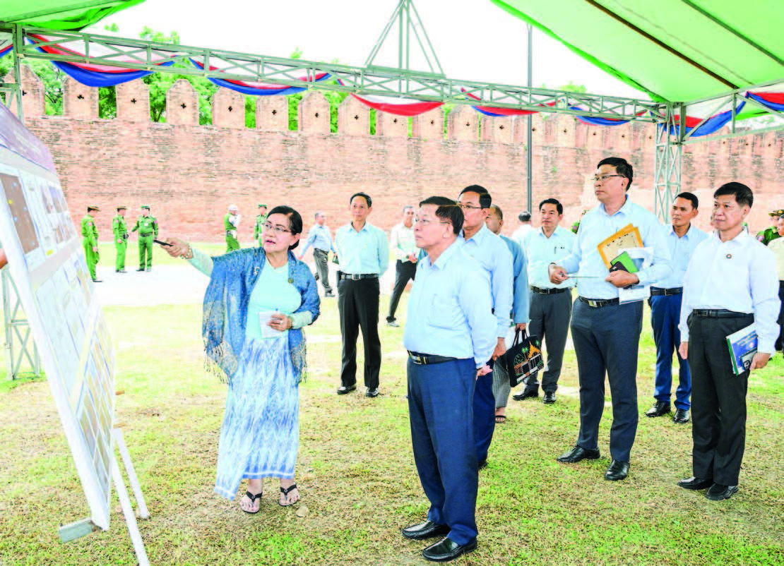 In the royal Mandalay city, the Senior General inspected maintenance of the western wall of the royal city and preparations to rebuild Sishay Bridge. Deputy Minister for Religious Affairs and Culture Daw Nu Mra Zan reported on the brief history of the bridge and its evidences and Union Minister for Construction U Myo Thant on plans underway to rebuild Sishay Bridge.