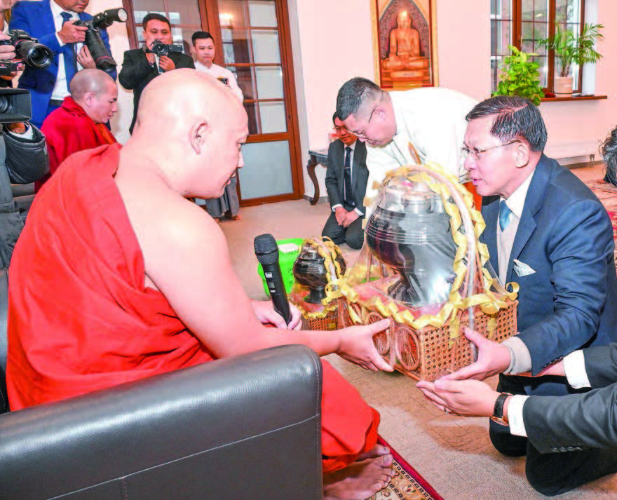 Under the guidance of State Ovadacariya Chairman of Shwegyin Nikaya 16th Shwegyin Sangharaja Chancellor of Sitagu International Buddhist Academies and Sitagu Hospitals Abhidhaja Maharatthaguru Abhidhaja Mahasaddhammajotika Mahadhammakathika Bahujanahitadhara Sitagu Sayadaw Dr Bhaddanta Nyanissara and Professor Dean of the International Theravada Buddhist Missionary University Dhammaduta Sayadaw Dr Bhaddanta Chekinda and the patronage of SAC Chairman Prime Minister Senior General Min Aung Hlaing and his wife Daw Kyu Kyu Hla, families of Tatmadaw (Army, Navy and Air), families of the Myanmar Embassy to Russia and the office of the Myanmar Military Attaché to Russia and families of scholarship trainees arranged the Myanmar Theravada Buddhist Centre for propagation of the Buddhism in Russia starting from 2013. The ceremony to share the merits of the centre’s construction took place in 2015.