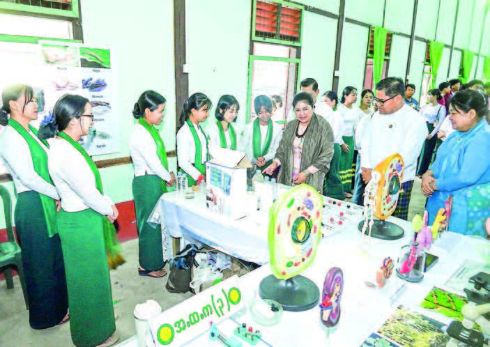 Daw Dwe Bu also inspected the sales of products at the event, and they bought presents for departmental staff, ward administrators and educational staff.