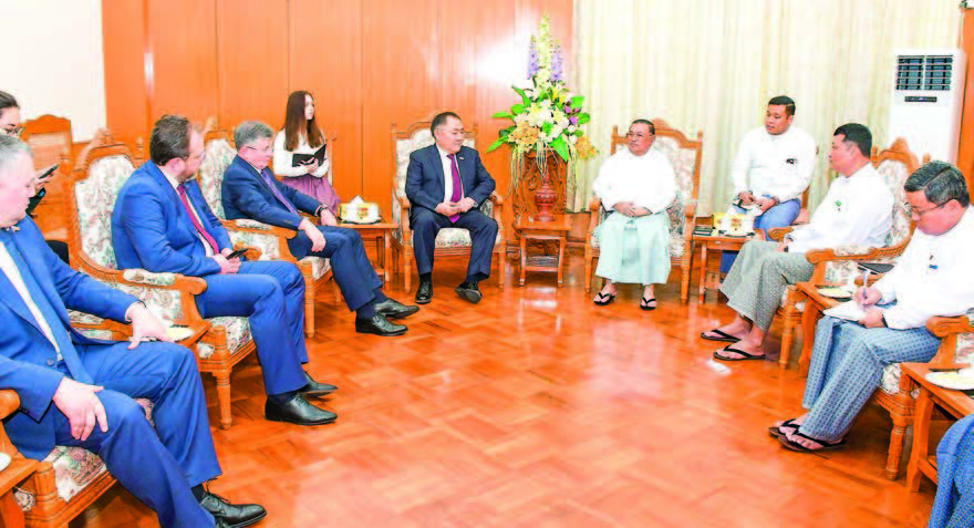 STATE Administration Council Member U Wunna Maung Lwin received a delegation led by Mr Sholban Kara-Ool, Deputy Chairman of the State Duma of the Federal Assembly of the Russian Federation, at the SAC office yesterday afternoon.