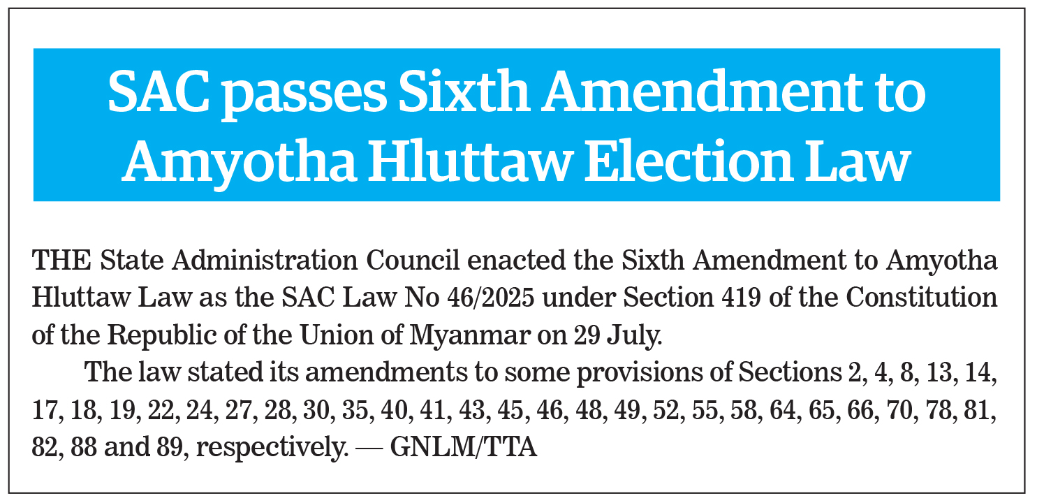 SAC passes Sixth Amendment to Amyotha Hluttaw Election Law