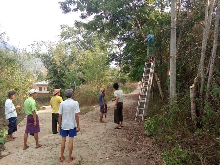 In a bid to prevent the risk of electrocution, relevant department personnel led by the Township General Administration Department cut down the branches of the trees near power cable lines and checked over power cables and boxes along Thitsa and Khayay roads in the town of Sukali in Myawady district, Kayin state this morning.