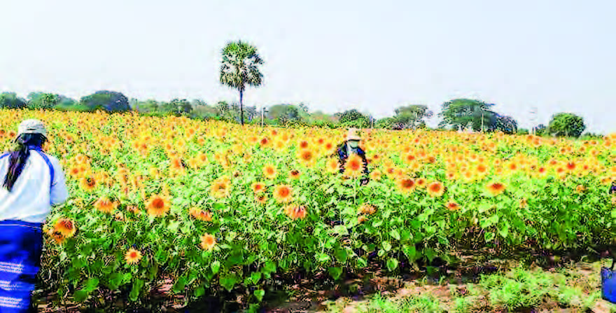 In a bid to ensure edible oil self-sufficiency and increase the income of growers, sunflower varieties (hybrid-1, Sinshwekya 2,3, Sanphola sunflower vari­eties) are cultivated in model farming plots to produce pedi­gree sunflowers. Officials from the Agriculture Department are providing technical assistance, pedigree seeds and some inputs. They are also joining hands with the department concerned to prevent pest and disease prob­lems.