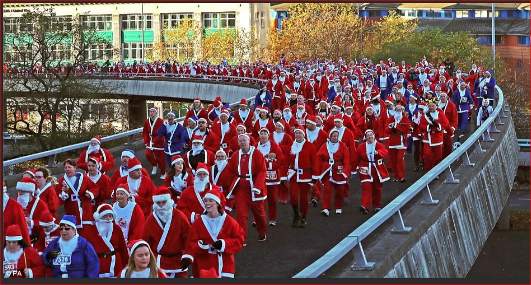 In a Paris suburb in France, nearly 4,000 people wearing Santa Claus costumes took part in a charity run on Sunday.