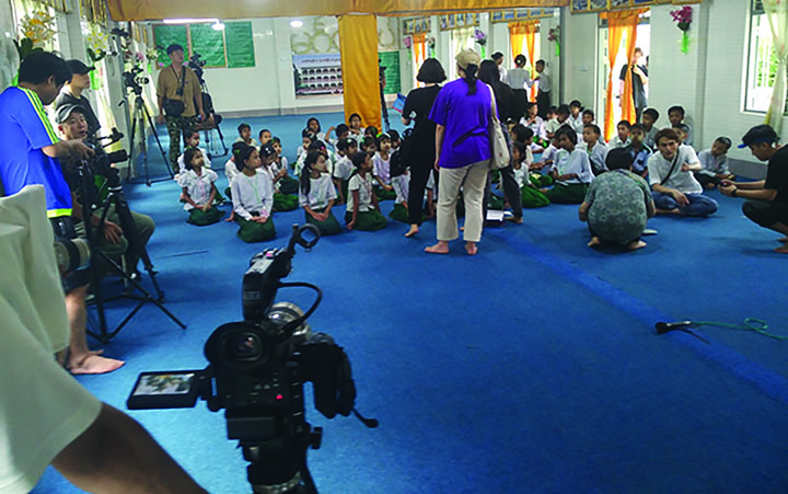 A 42-member film crew from South Korea’s SBS Plus filmed young children learning music in Taw Taik Dhamma Yeik Thar monastic school in Mingaladon Township, Yangon, yesterday as part of their Music Documentary Program.