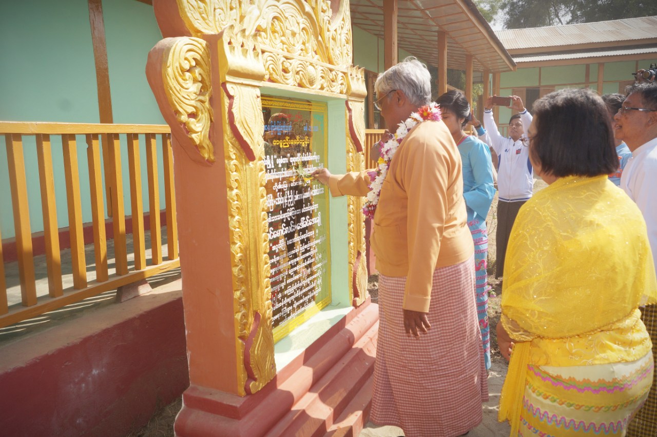 First, Sagaing Region Chief Minister Dr. Myint Naing, State Minister for Social Affairs Dr. Zaw Win, Police Major Than Tun Aung and well-wisher U Khin Maung Lin and wife Daw Khin Aye Cho formally cut the ceremonial ribbon and the Region Chief Minister and well-wisher sprinkled the scented water on the stone inscription.
