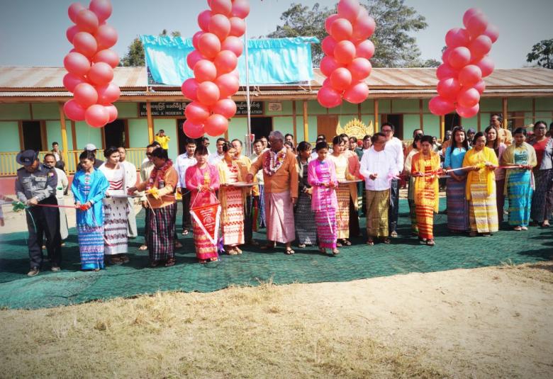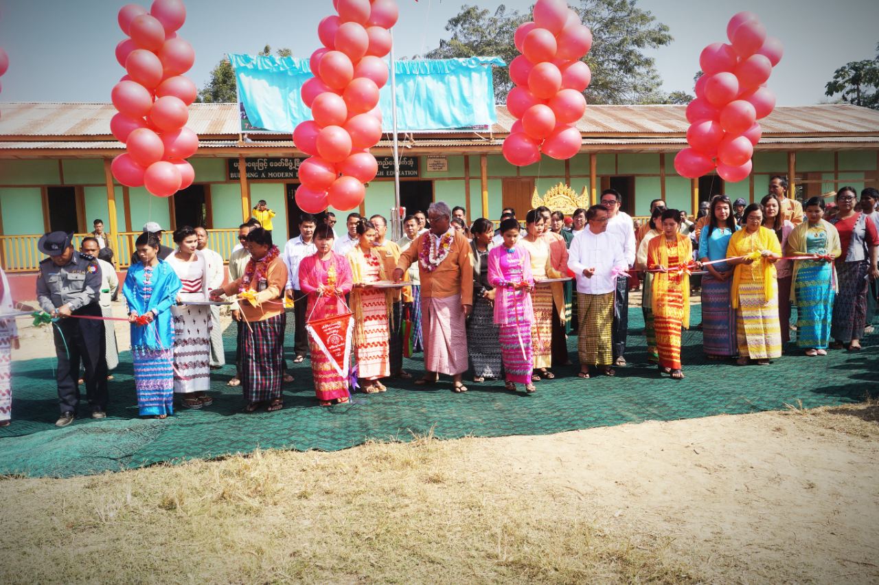 A ceremony to hand over school building in Basic Education Middle School in Latpanseik village in Mingin Township, Kale District, Sagaing Region to Education Department was held in front of the building yesterday.