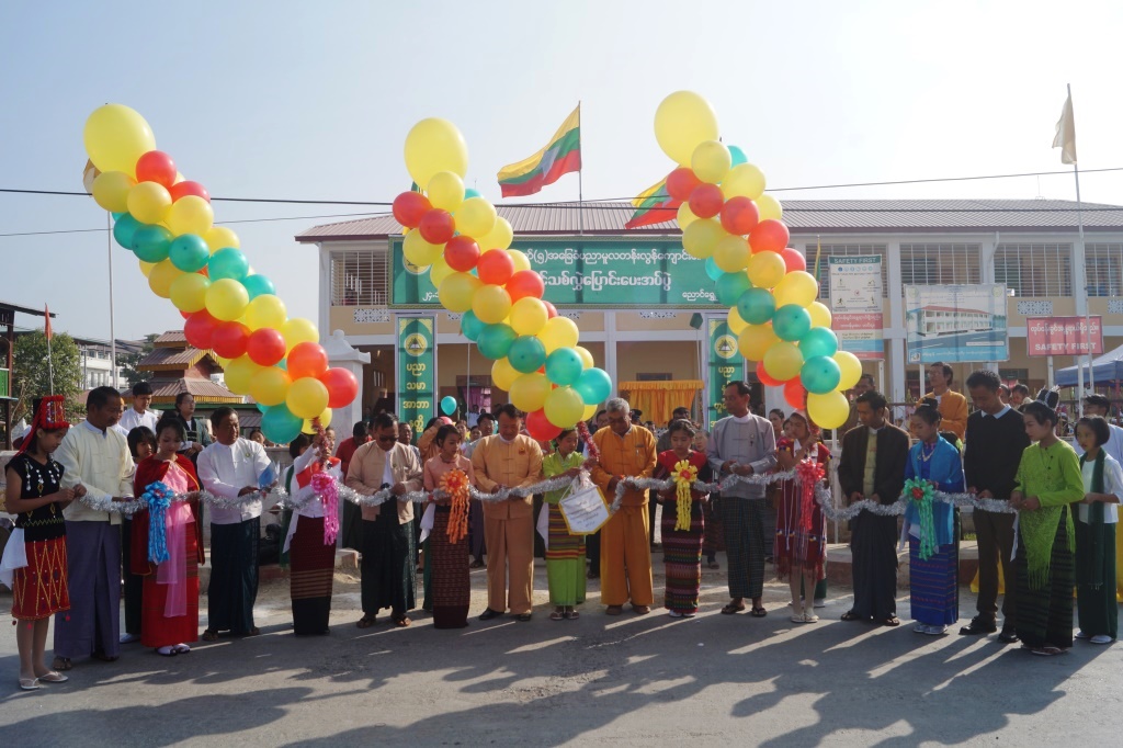 First, Shan State Minister for Intha Ethnic Affairs Dr. Tun Hlaing, MP U Khin Maung Win of Shan State Hluttaw, an official from the State Education Officer’s Office and officials formally cut the ceremonial ribbon.