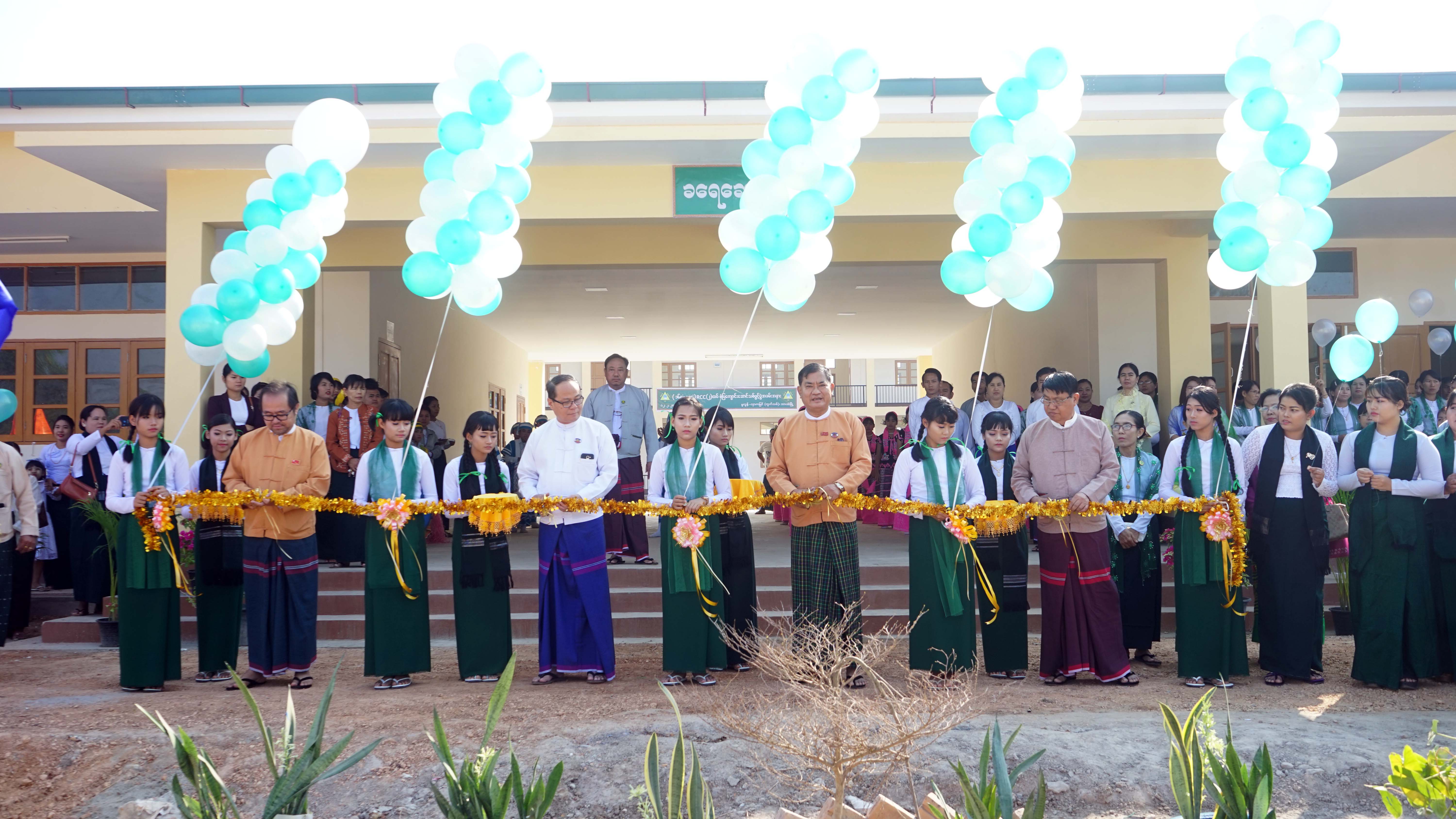 First, Kayin State Minister for Planning, Finance and Municipal Affairs U Than Naing, State Minister for Agriculture, Livestock and Irrigation U Saw Myint Oo, State Minister for Electricity and Industry U Soe Hlaing and State Minister for Social Affairs U Bo Bo Wai Maung opened the school building.