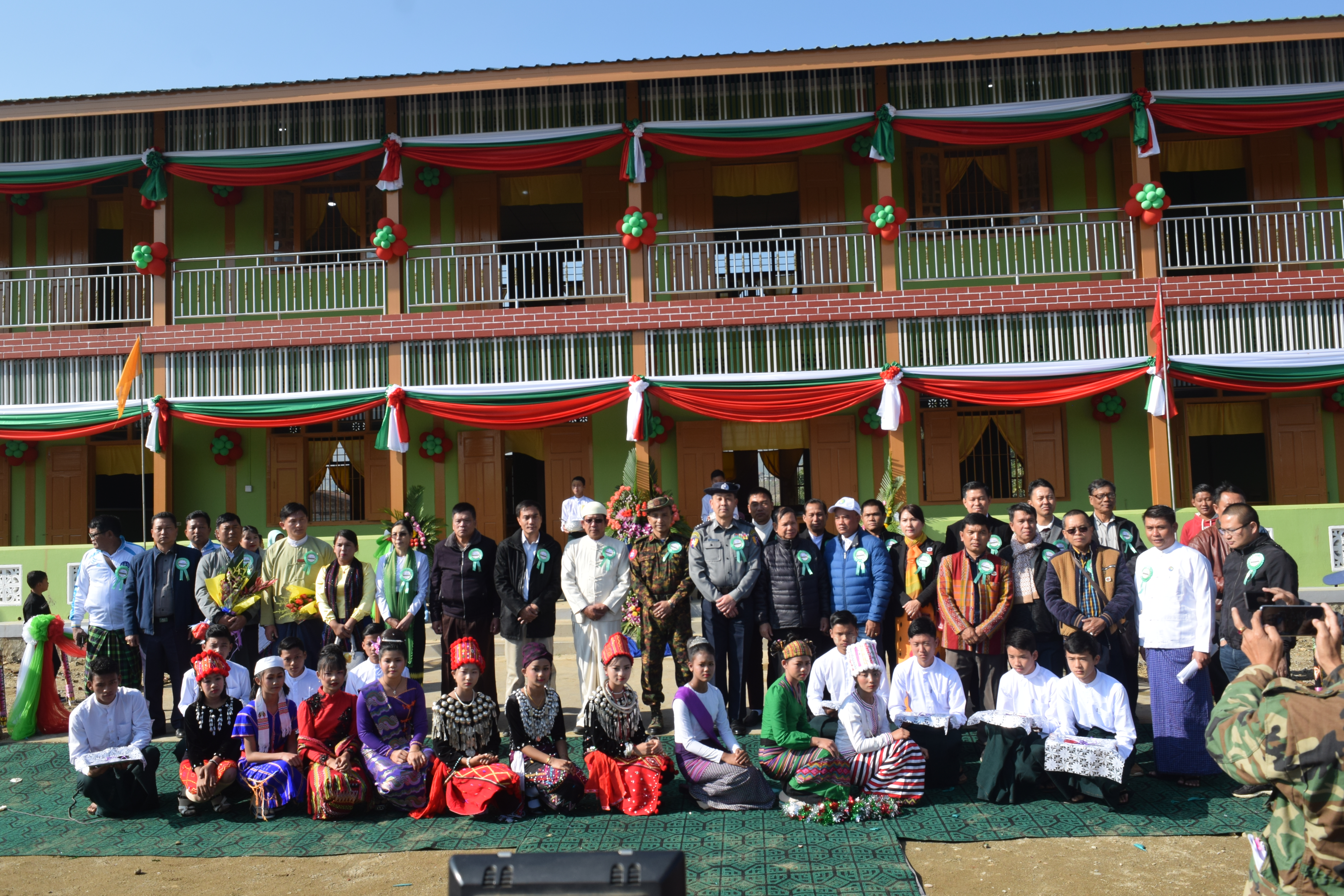 The school building was formally opened by the Pyithu Hluttaw Representative U Tint Soe, Commander of local military station Col Zaw Myo Win, Police Col Than Htike Soe, the deputy township administrator and the township education officer by cutting a ceremonial ribbon.—Tar Lin Maung (IPRD)
