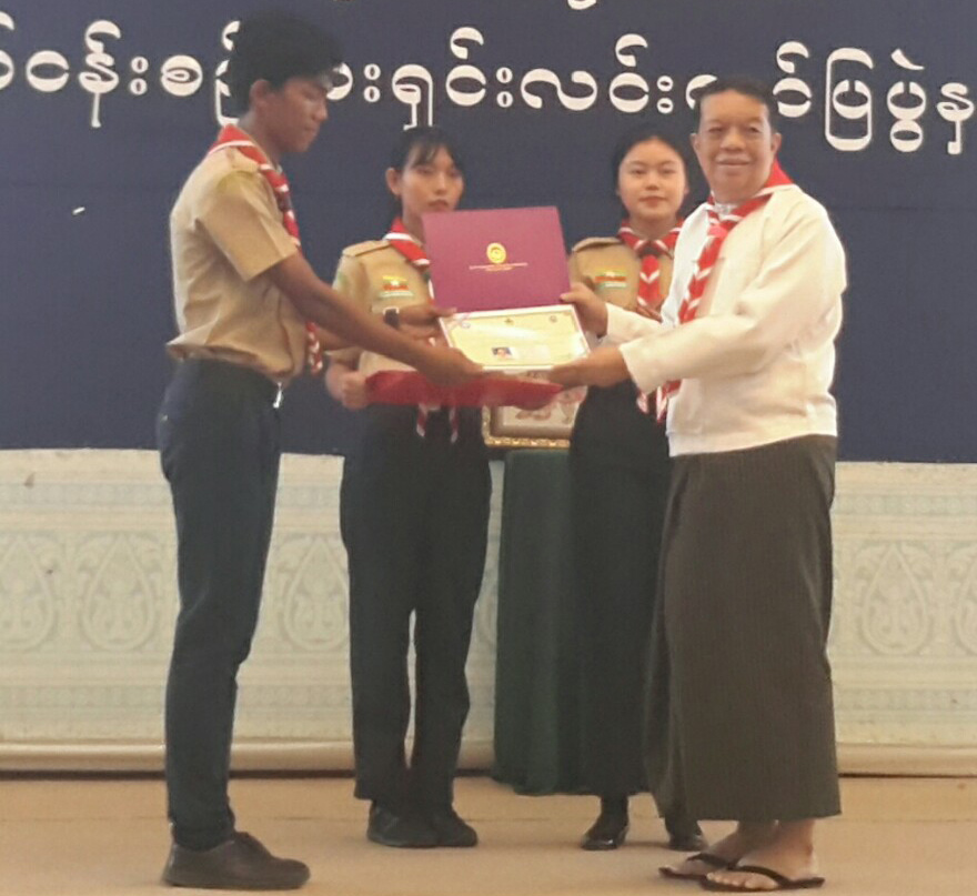 At the event, Chairman of Union Peace Commission and Patron of Myanmar Scout Association, Dr. Tin Myo Win, said that Myanmar Scout Association had ran local peace coordinators training in collaboration with Asia Pacific Scout Region, and that Myanmar hosted Dialogue For Peace facilitator Training which Myanmar scout representative and scout representatives from 13 countries of Asia Pacific Scout Region attended. This event reflects the effort of International and Myanmar youth for peace. The scouts were honoured for their achievement in building mutual respect, understanding and trust with international youth through this training.
