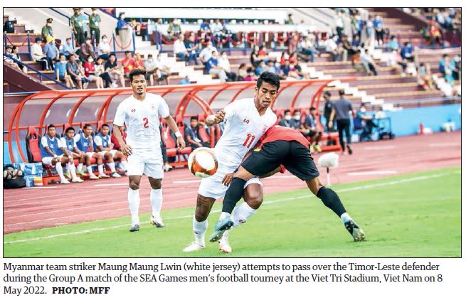 SEA Games Football: Myanmar snatch late winner over Timor-Leste MYANMAR snatched a late 3-2 win over Timor-Leste when Defender Aung Wunna Soe scored in injury time in their Group A tie of the SEA Games men’s football event that was played at the Viet Tri Stadium.