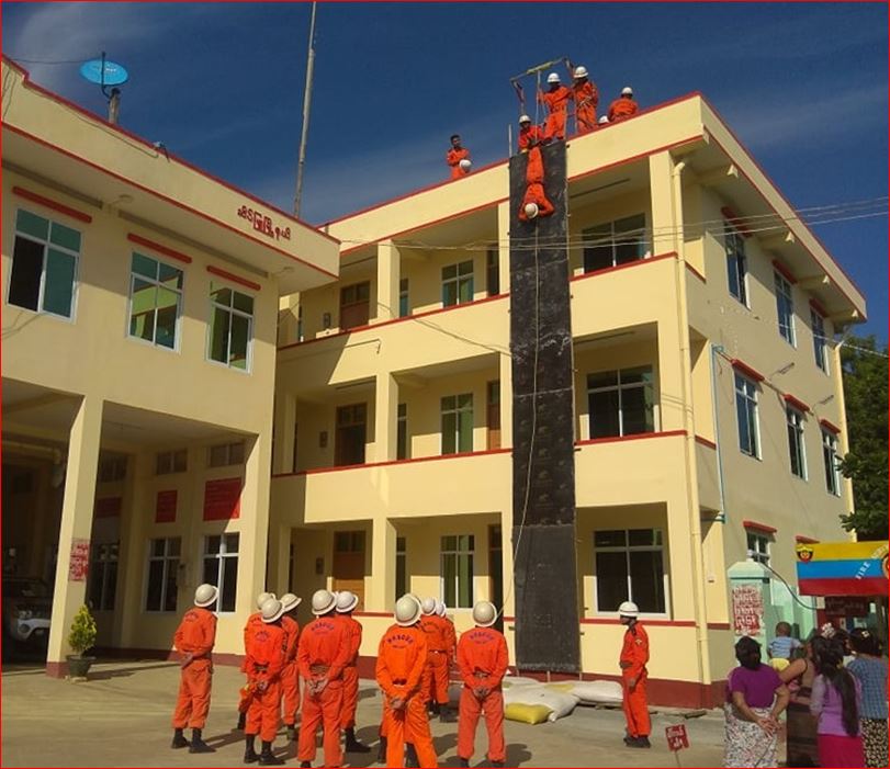 A search and rescue operation was practiced in front of the Township Fire Services Department in the township of Seikphyu, Magway region yesterday evening.