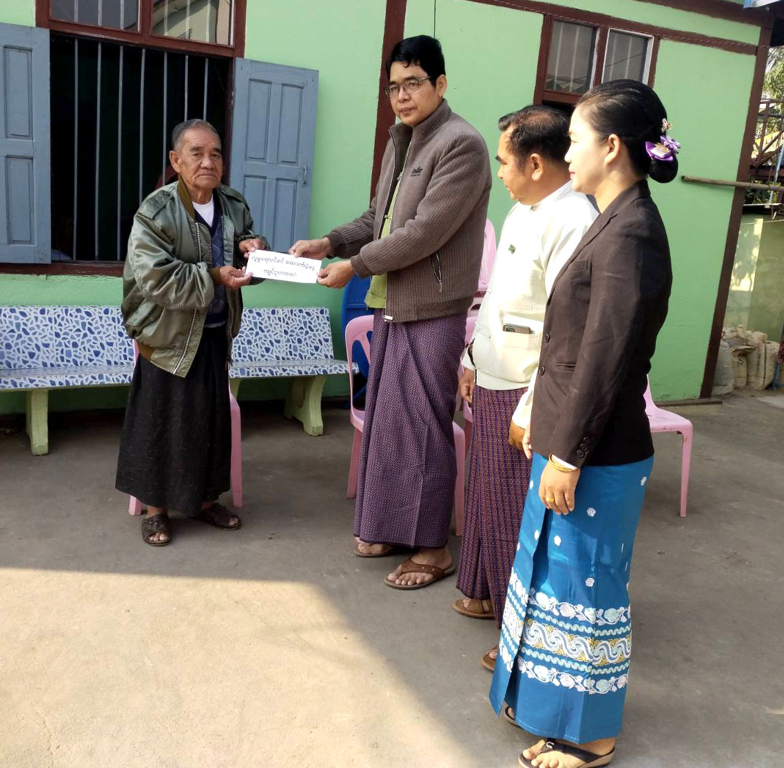 Officials gave a domiciliary visit to provide cash assistance to senior citizens aged 85 and above in rural areas in Monghsat District of eastern Shan State on 29 February and provided cash assistance to elderly people.