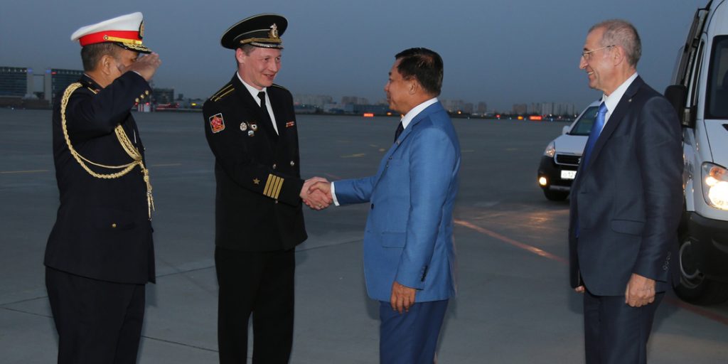 The Senior General and party were welcomed by Deputy Commander-in-Chief of Defence Services Commander-in-Chief (Army) Vice Senior General Soe Win, Chief of General Staff (Army, Navy, Air Force) General Mya Tun Oo, Commander-in-Chief (Navy) Admiral Tin Aung San, Commander-in-Chief (Air) General Maung Maung Kyaw, high ranking officers from the Office of the Commander-in-Chief of Defence Services, Nay Pyi Taw Command Commander, Russian Ambassador to Myanmar H.E. Dr. Nikolay Listopadov, Deputy Military Attaché and officials at the Nay Pyi Taw Airport.